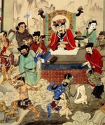 Все, кто закончил свое земное существование, не важно они были праведниками или грешниками, проходят через подземное царство, в котором определяется степень их вины и наказание, которое предстоит им вытерпеть. Но тут путь грешников и праведников перестает идти одной дорогой. Те, кому не надо расплачиваться за свои грехи, выпивают эликсир забвения, и после него снова возрождаются, переходя через несколько мостов в царство живых. А вот все остальные должны пройти мимо Нецзинтай. Это – зеркало души, которое показывает все сотворенное ей зло. Говорят, что нет перед ним безгрешных. В зависимости от тяжести преступления отправляются все в свой зал, и справедливый правитель зала воздает им наказание, которого они заслуживают. Всего есть десять залов, которые могут быть более или менее страшными. И находятся они во всех частях света. Там определяется, кто и кем вернется в этот мир.
