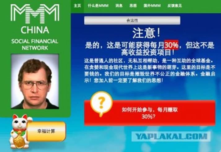 Создатель самой знаменитой финансовой пирамиды нашей страны отправился зарабатывать на китайцах! Он основал там новый проект, что носит такое же название, как и в России, только с припиской «Китай». Смысл у него примерно тот же – создатель называет его фондом бескорыстной помощи друг другу. Правда, он играет на других страхах.
