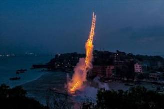 Начало перформанса застали немногие – ведь художник решил продемонстрировать свое творение непосредственно перед рассветом. То есть без десяти пять утра. Местом перформанса стал даже не большой город, а небольшая деревня рыбаков, что находится в провинции Фуцзянь. Сегодня деревенька вполне известна в художественном пространстве – дело в том, что именно отсюда родом автор необычнейших шоу в истории Китая. Хотя он уже давно живет в Америке, пользуясь свободой самовыражения и простотой устроения мероприятий, он с удовольствием приехал на родину, чтобы отпраздновать вместе со своей бабушкой ее день рождения. Впечатляющий юбилей – сто лет – стал причиной для представления. Шоу было подарком женщине от ее внука.