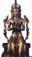 Но тут произошло чудо: собака превратилась в Майтрею, который сказал Асанге, что его сострадание является достижением духовного озарения, к которому так давно стремился аскет. В учении буддизма считается, что местом пребывания Майтреи является небо тушита. Здесь он ждет свое время вступления в мир людей в качестве Будды. Как только длительность жизни людей достигнет 84 000 лет, родится Будда, и весь мир будет подвластен этому справедливому буддийскому правителю. Культ Майтреи получил широкое распространение в странах Центральной Азии, в Тибете и Гималаях. В честь Майтреи сооружено много статуй. Обычно Майтрею изображали на троне, сидящим «на европейский лад». На статуях он золотого цвета, а рядом с ним находятся колесо дхармы, ступа и ваза.